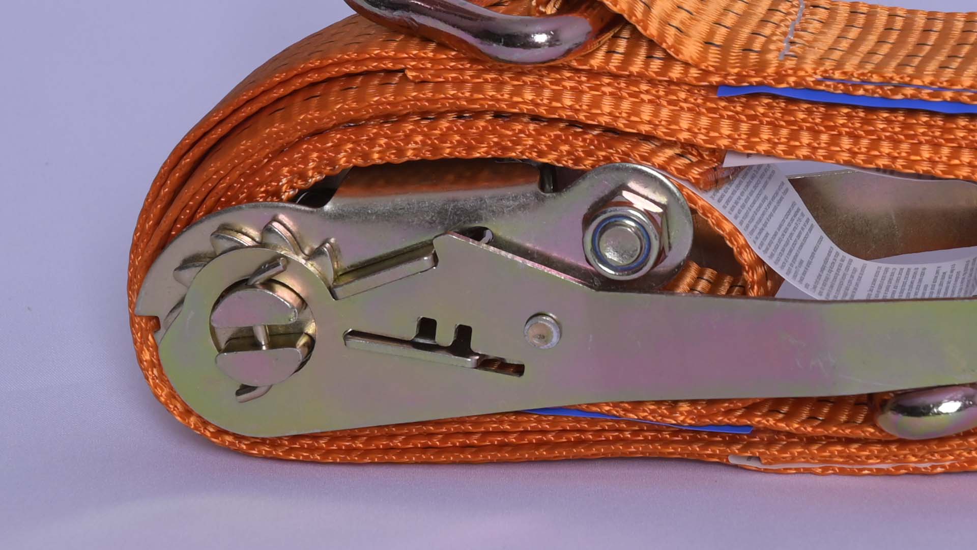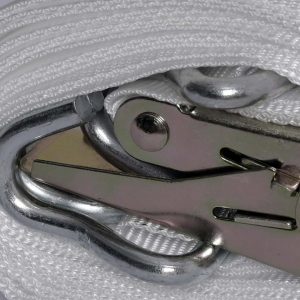 Pas transportowy wyposażony jest w napinacz (duża klamra z grzechotką) wykonany z grubej i wytrzymałej stali. Solidna zębatka oraz klamra zapewniają łatwe i komfortowe użytkowanie.